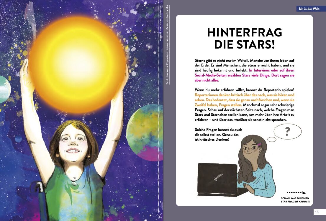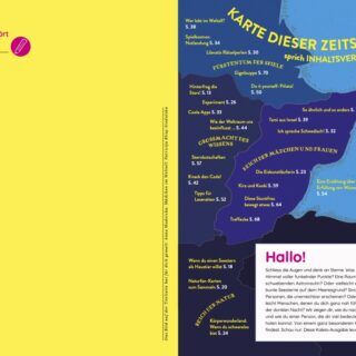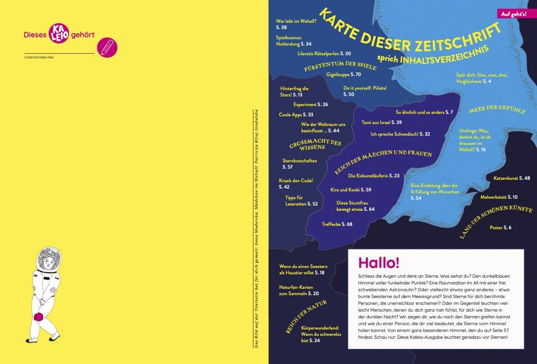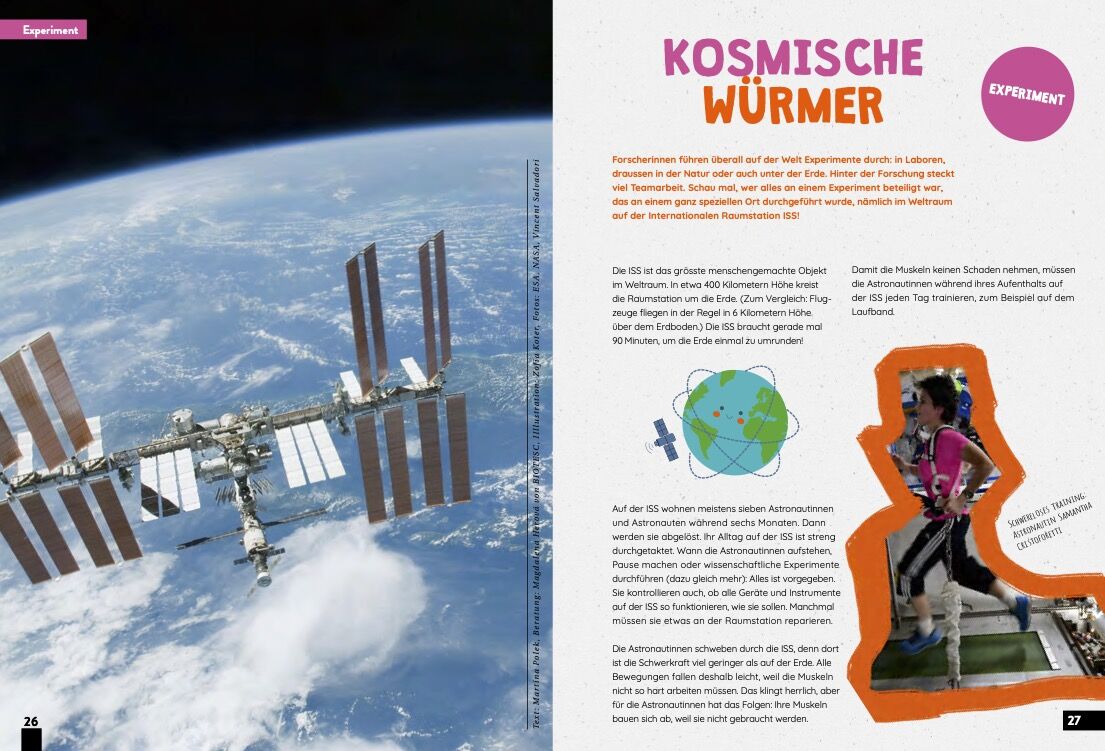 Ausserdem: Lerne alles über das Experiment mit kosmischen Würmern. Zeichne Sternbilder. Entschlüssle die Botschaft, die von Arecibo aus ins Weltall gesendet wurde. Erfinde deine eigenen Ausserirdischen. Baue eine Piñata. Erfahre warum manche Tiere im Winter ihr Fell wechseln. Und tauche ein in das Märchen vom goldenen Fischlein.