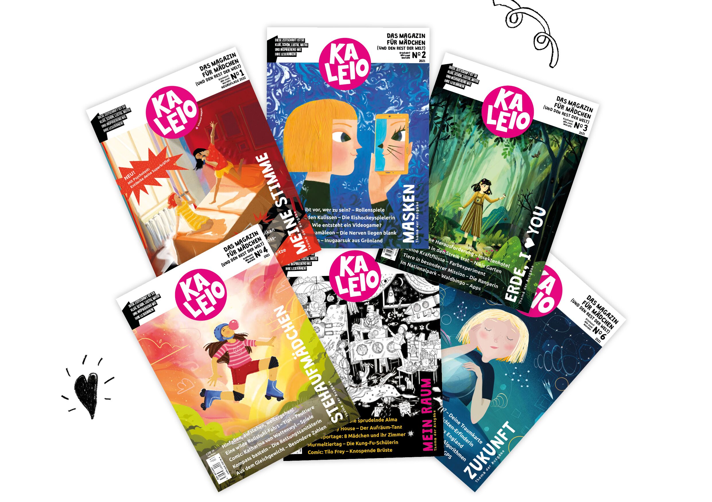 Entdecke die ganze Vielfalt von KALEIO im praktischen Jahres-Set! Dieses Paket vereint alle sechs Ausgaben des ersten Jahrgangs: Ein kompletter Rundgang durch ein Magazin, das Mädchen ernst nimmt, ihre Neugier feiert und sie auf ihrem Weg zu selbstbewussten jungen Menschen begleitet.